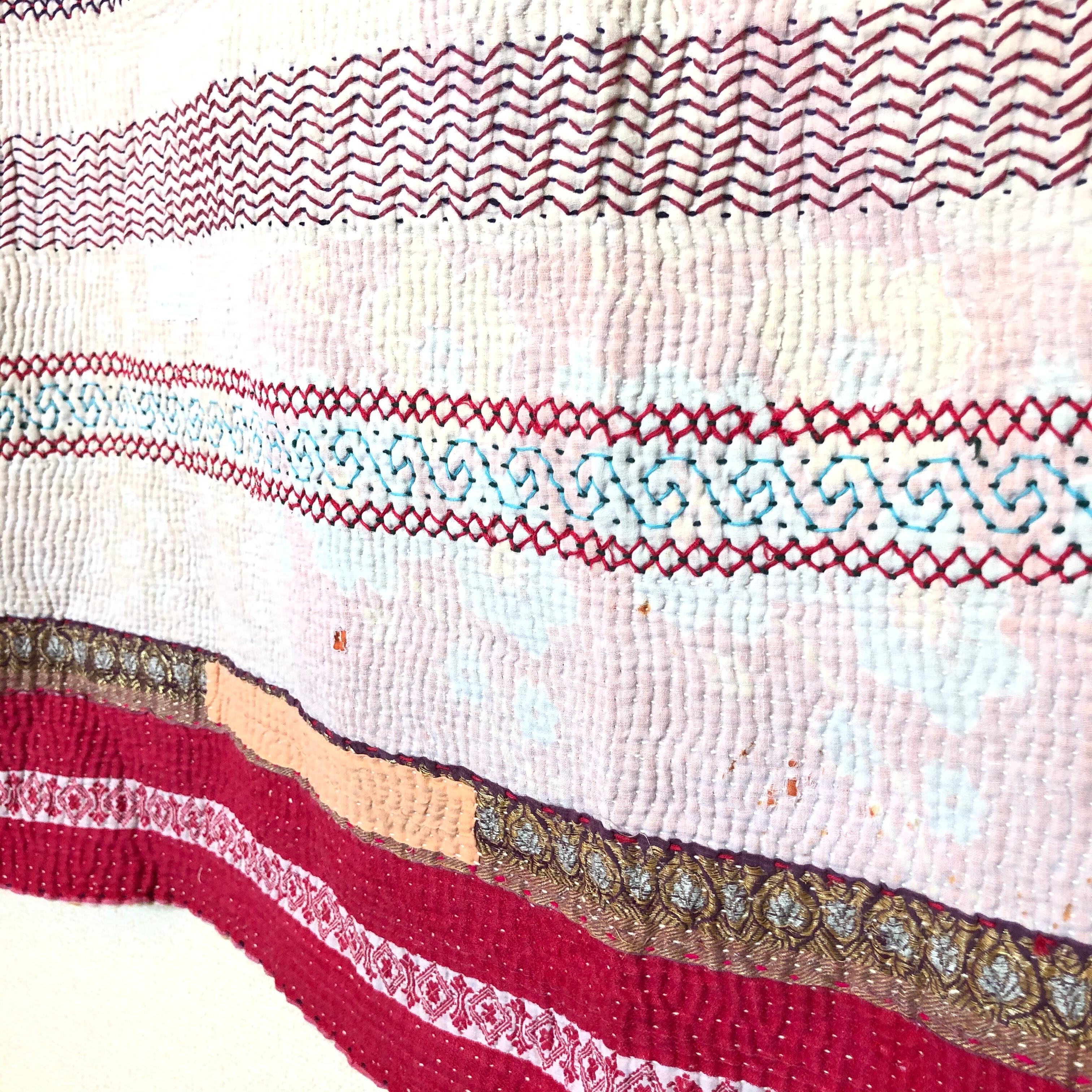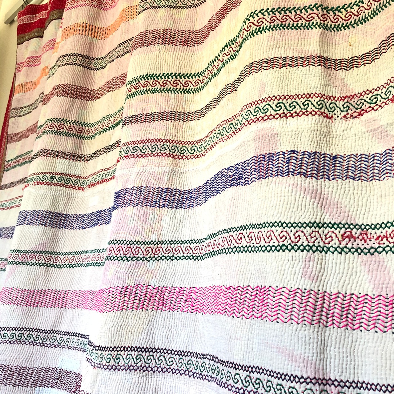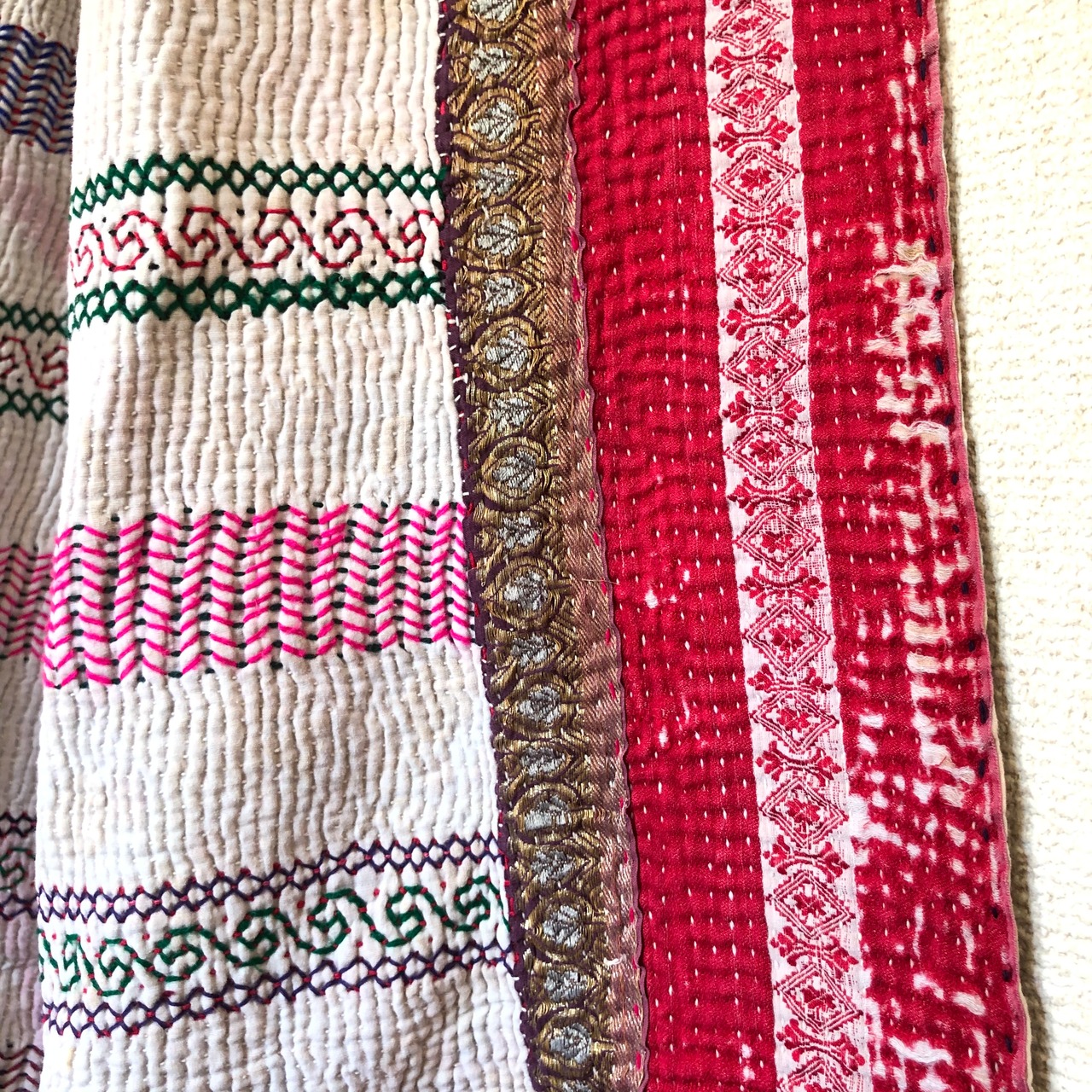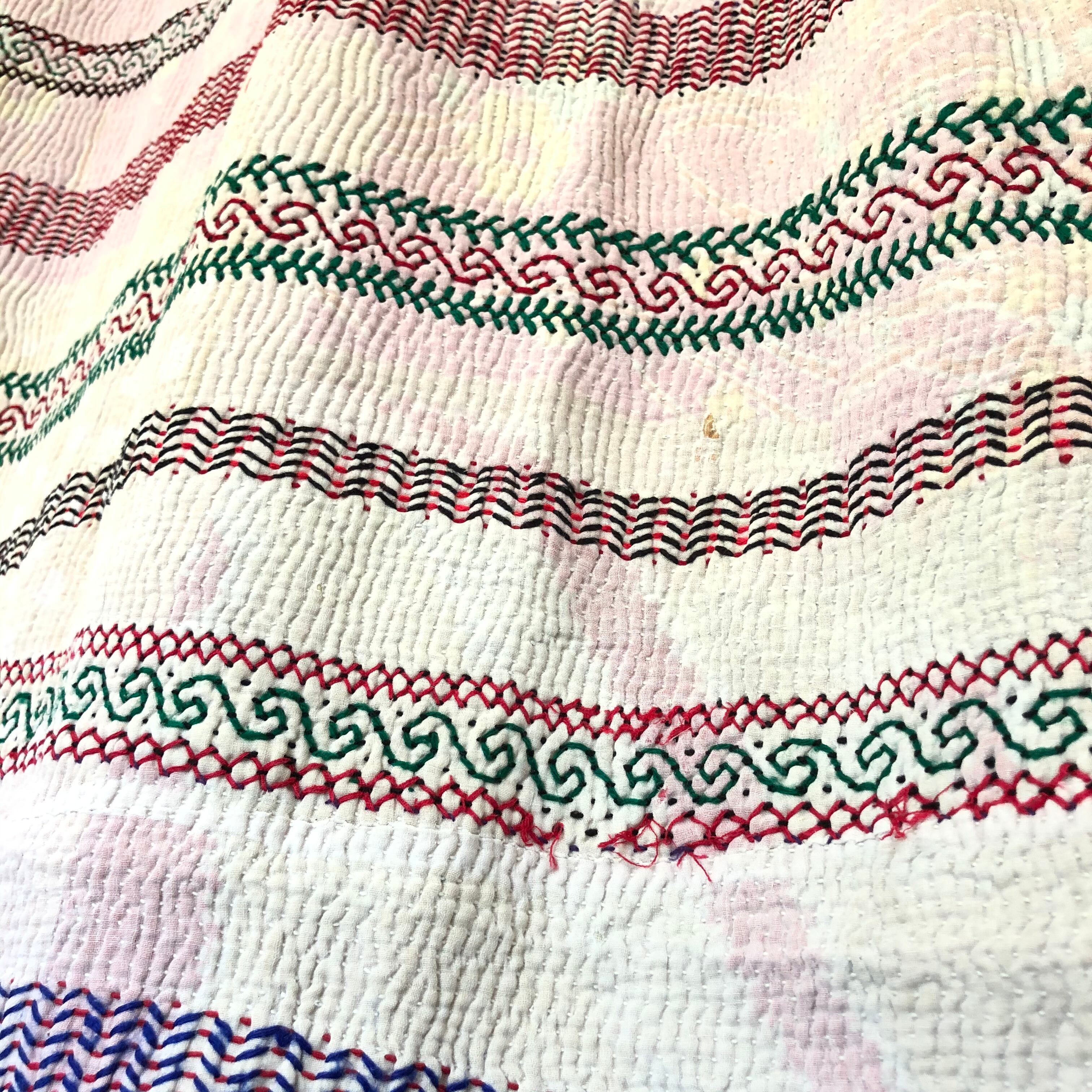 飾り刺繍が鮮やかなラリーキルト 刺し子 カンタ エスニック ハンドメイド 古布
