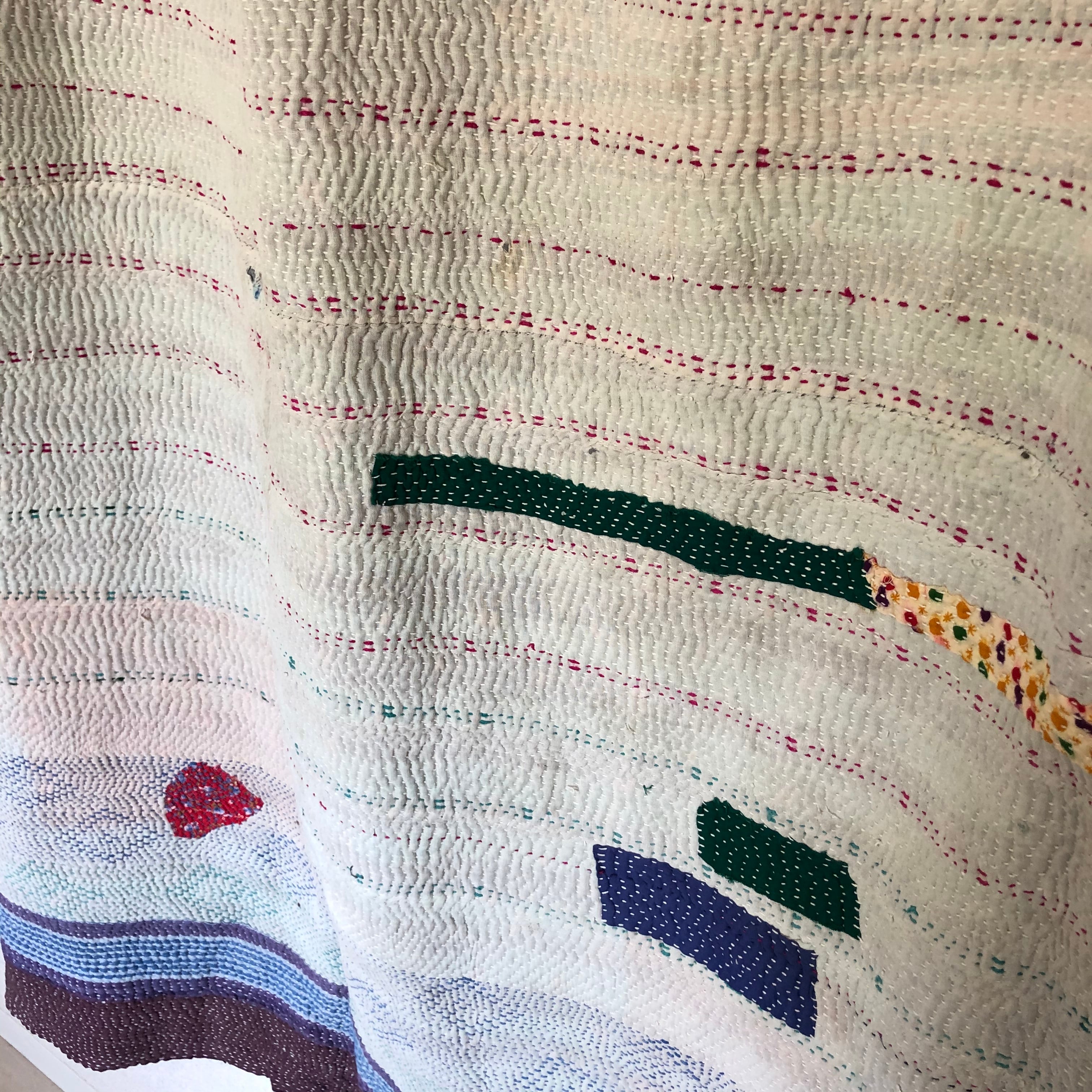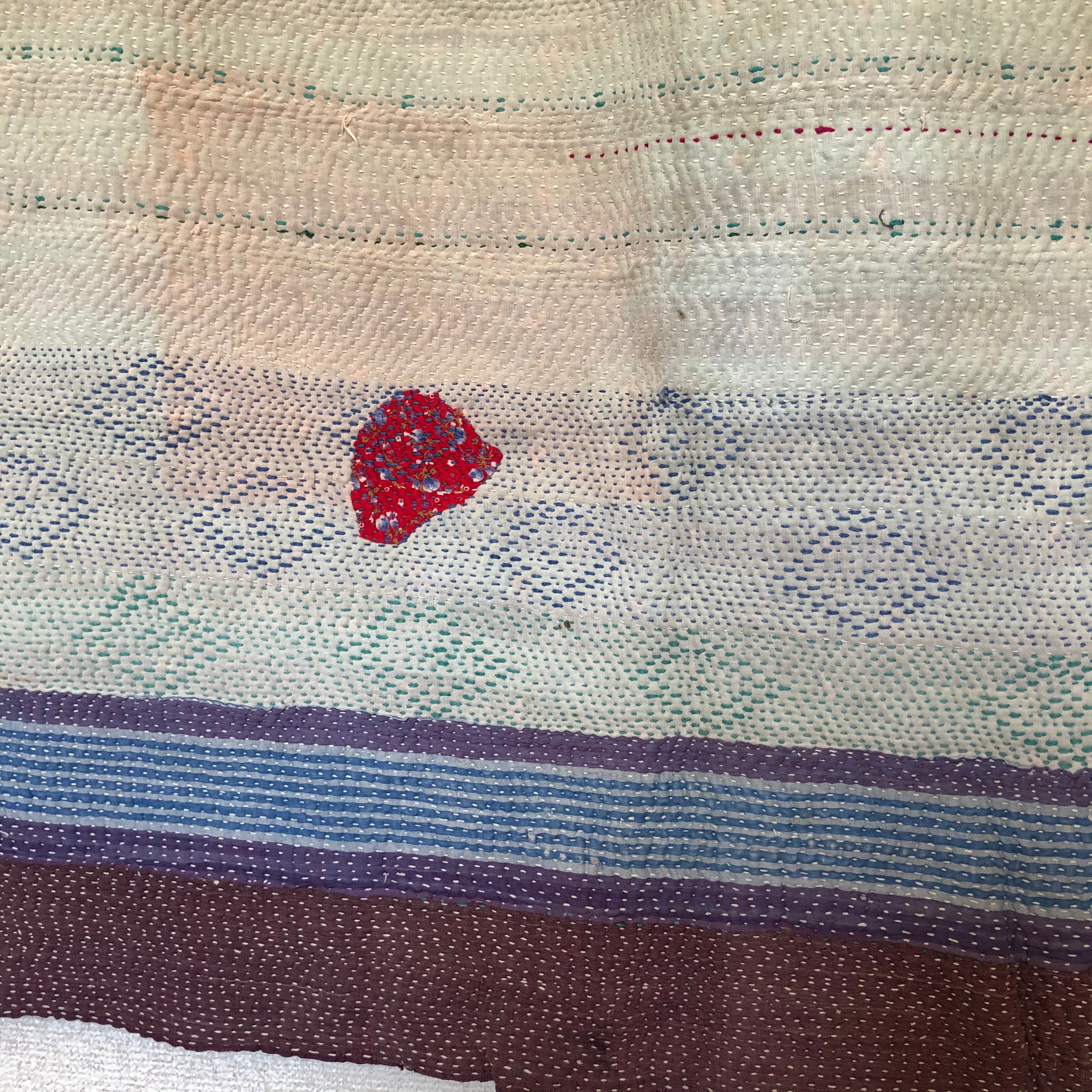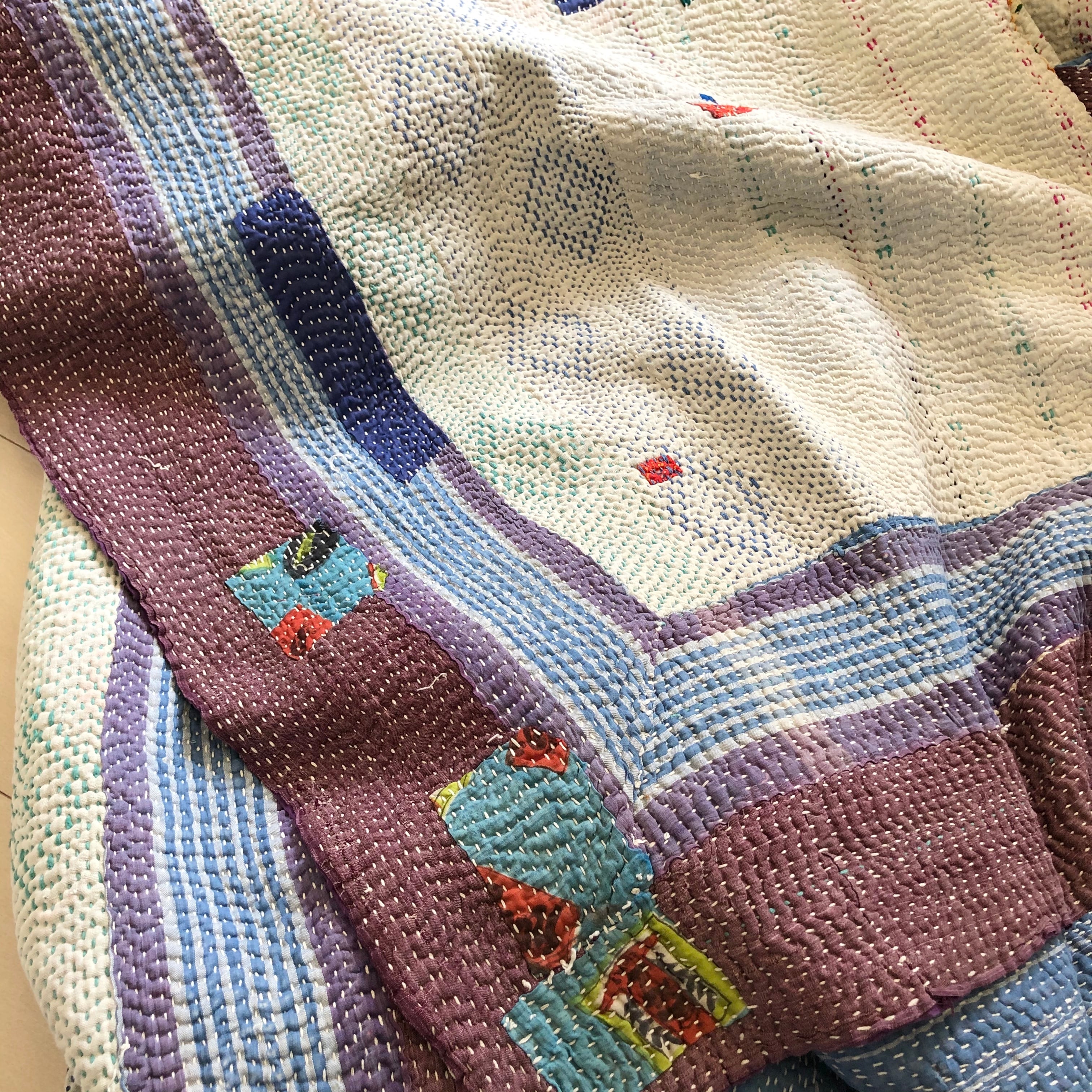当て布が可愛いずっしりラリーキルト 刺し子 カンタ刺繍 パッチワーク エスニック