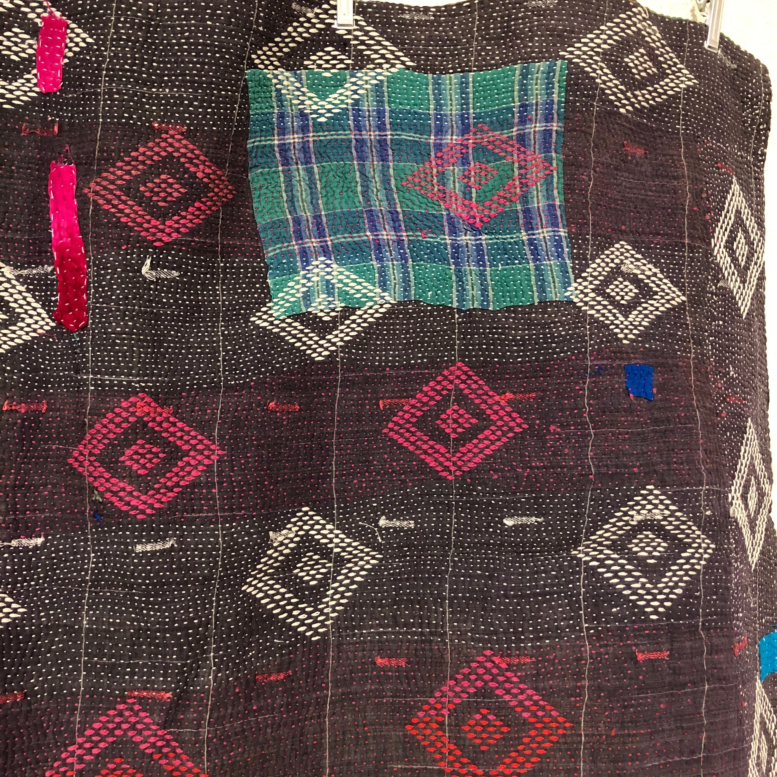 落ち着いた色合いのラリーキルト 刺し子 カンタ刺繍 エスニック ハンドメイド パッチワーク 古布