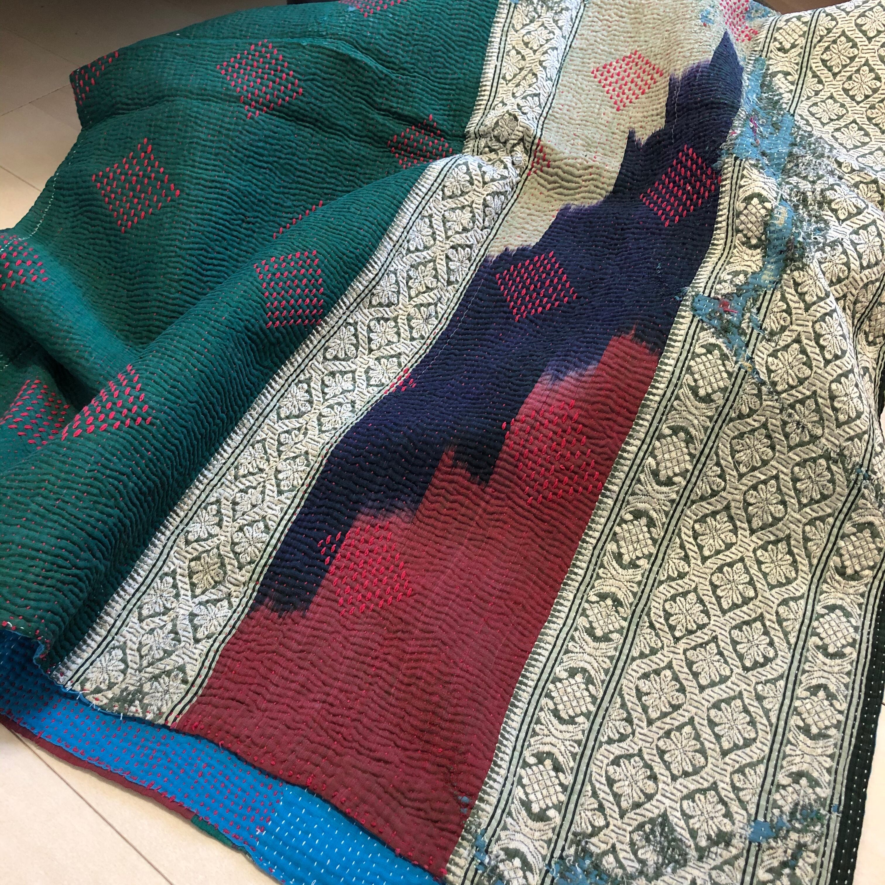 オリエンタルなラリーキルト 刺し子 カンタ刺繍 エスニック ハンドメイド 古布