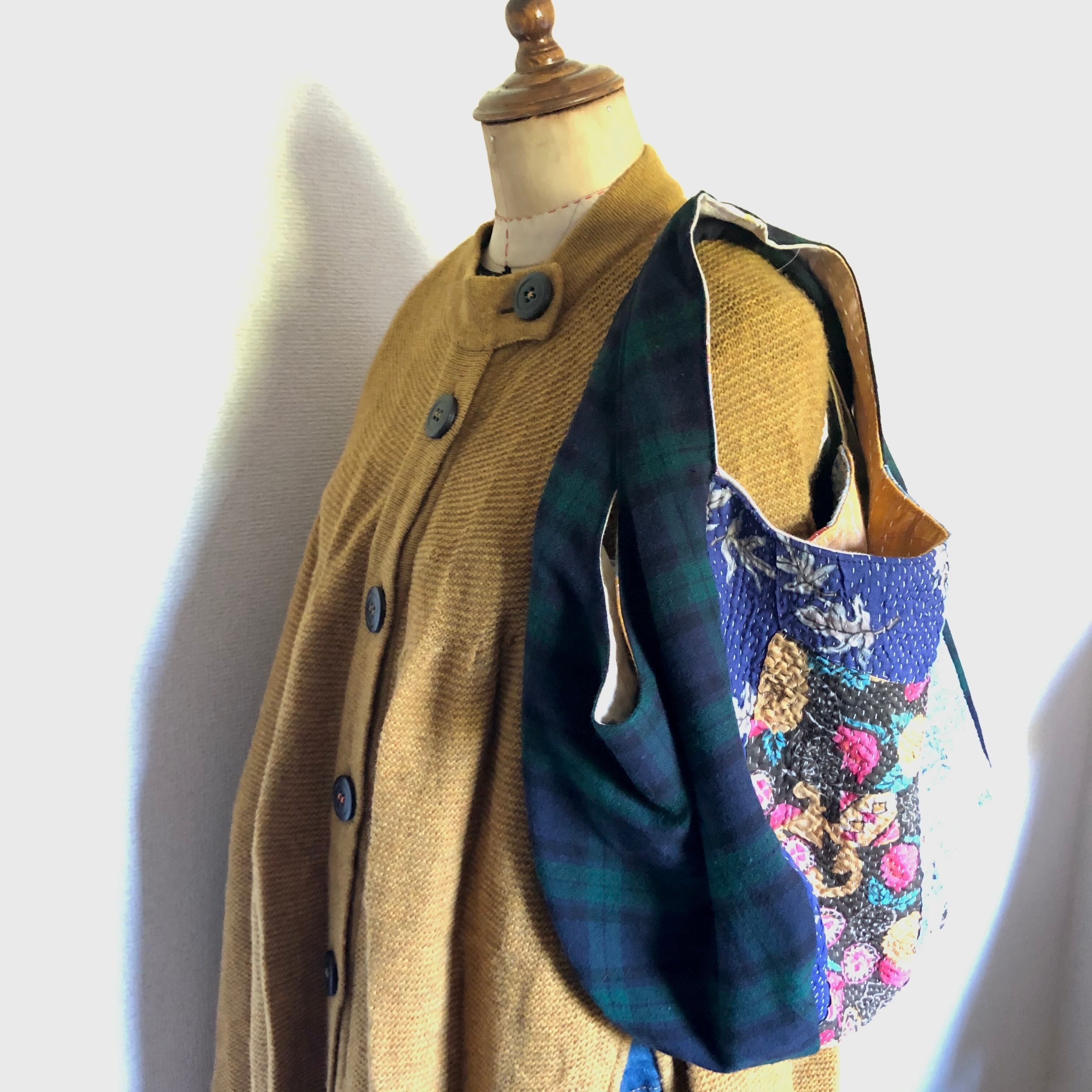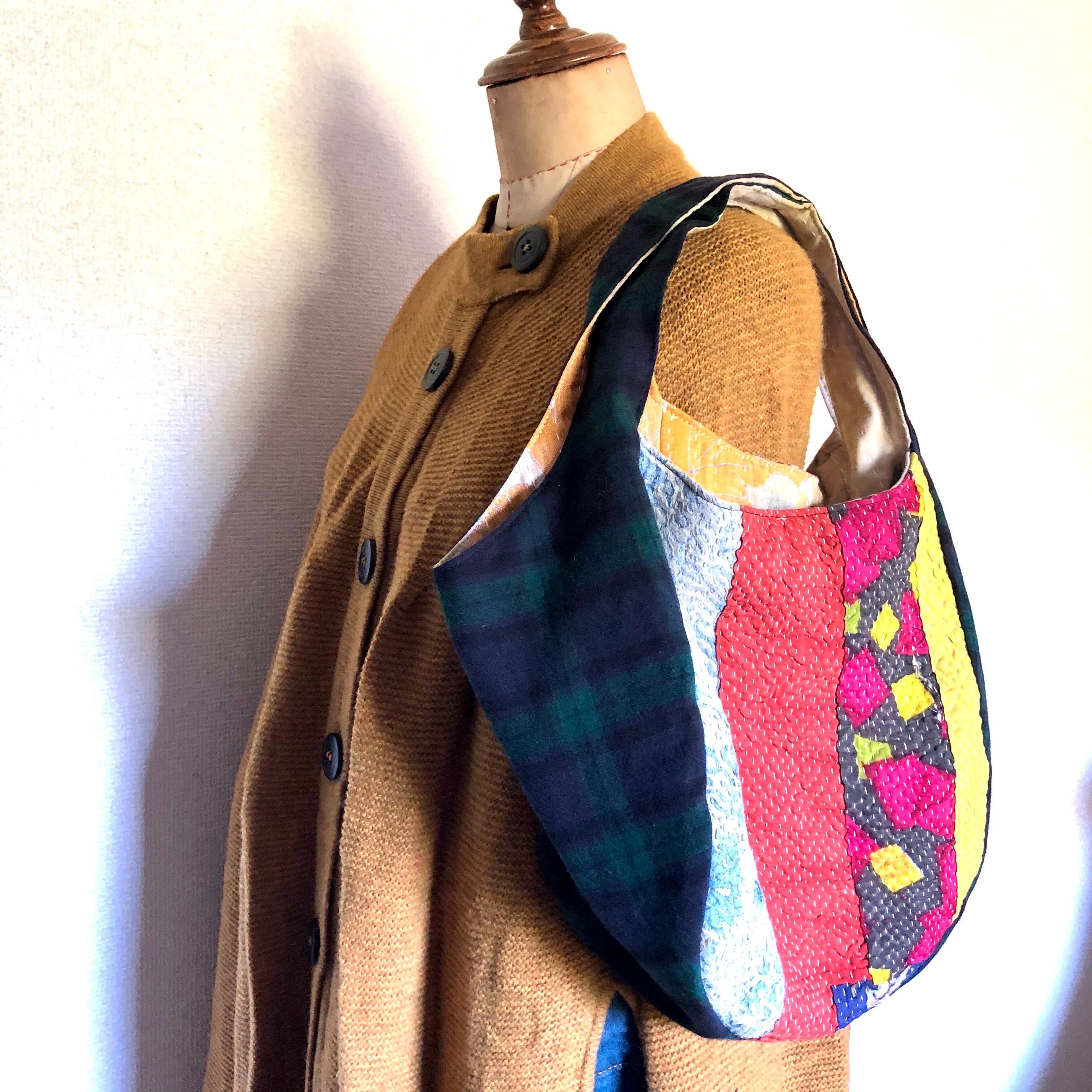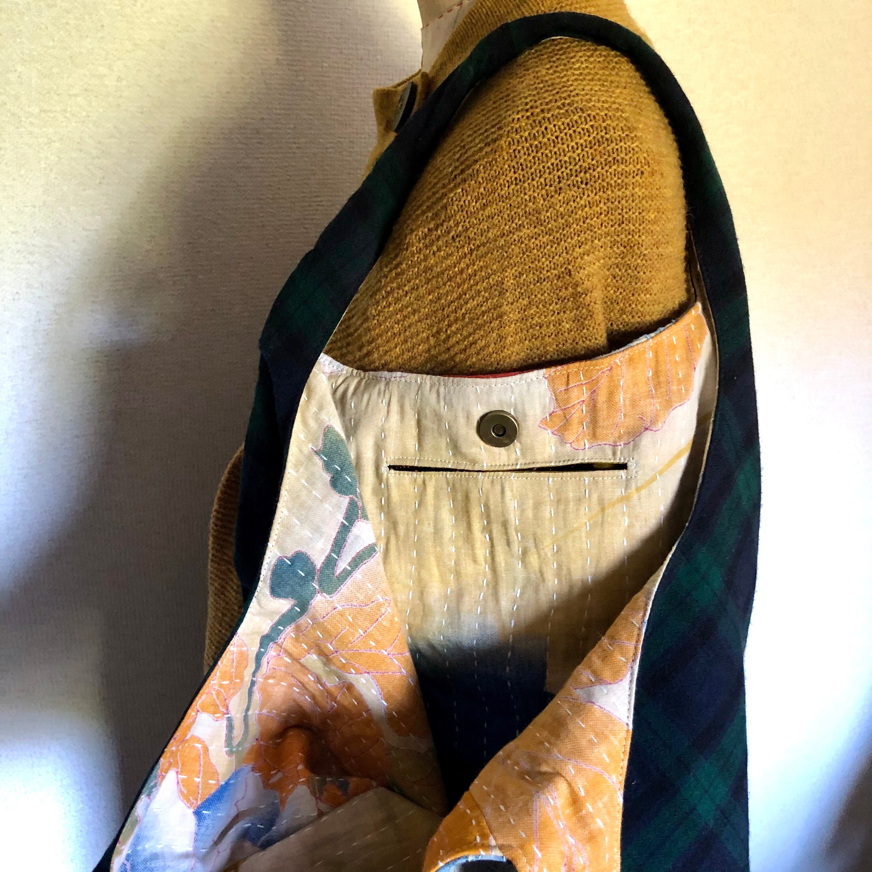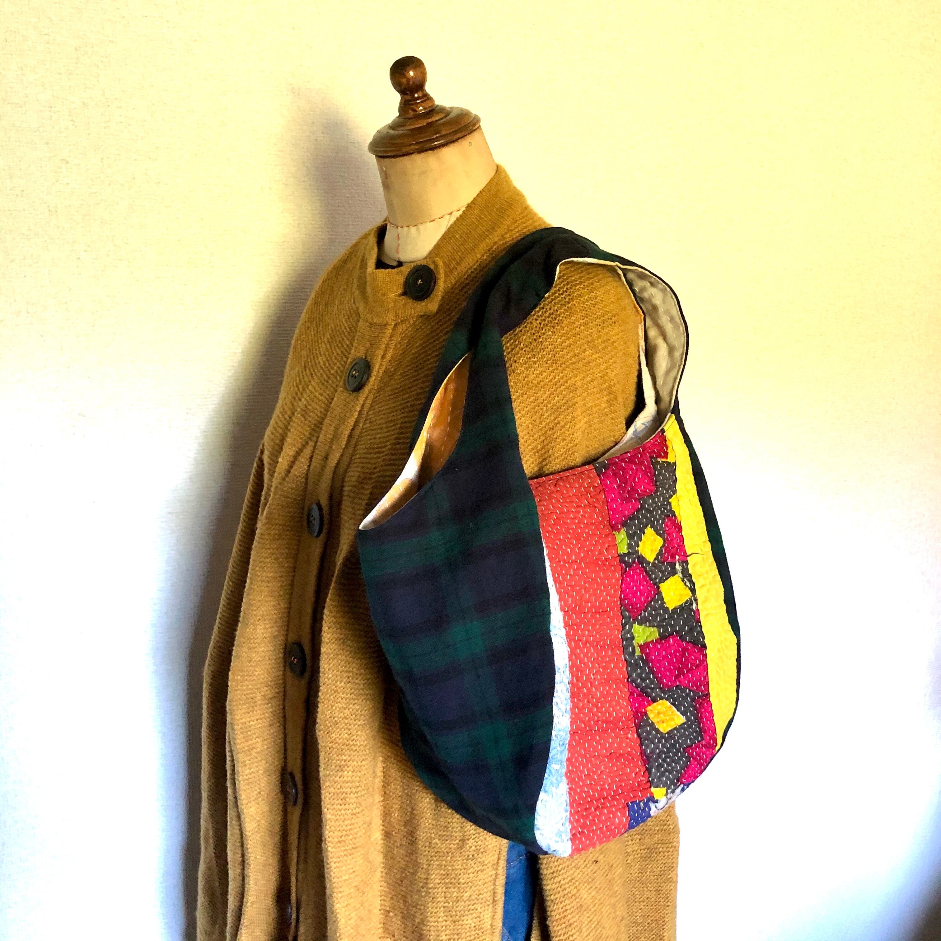 ブラックウォッチとラリーキルトのバッグ 刺し子 リメイク ハンドメイド エスニック