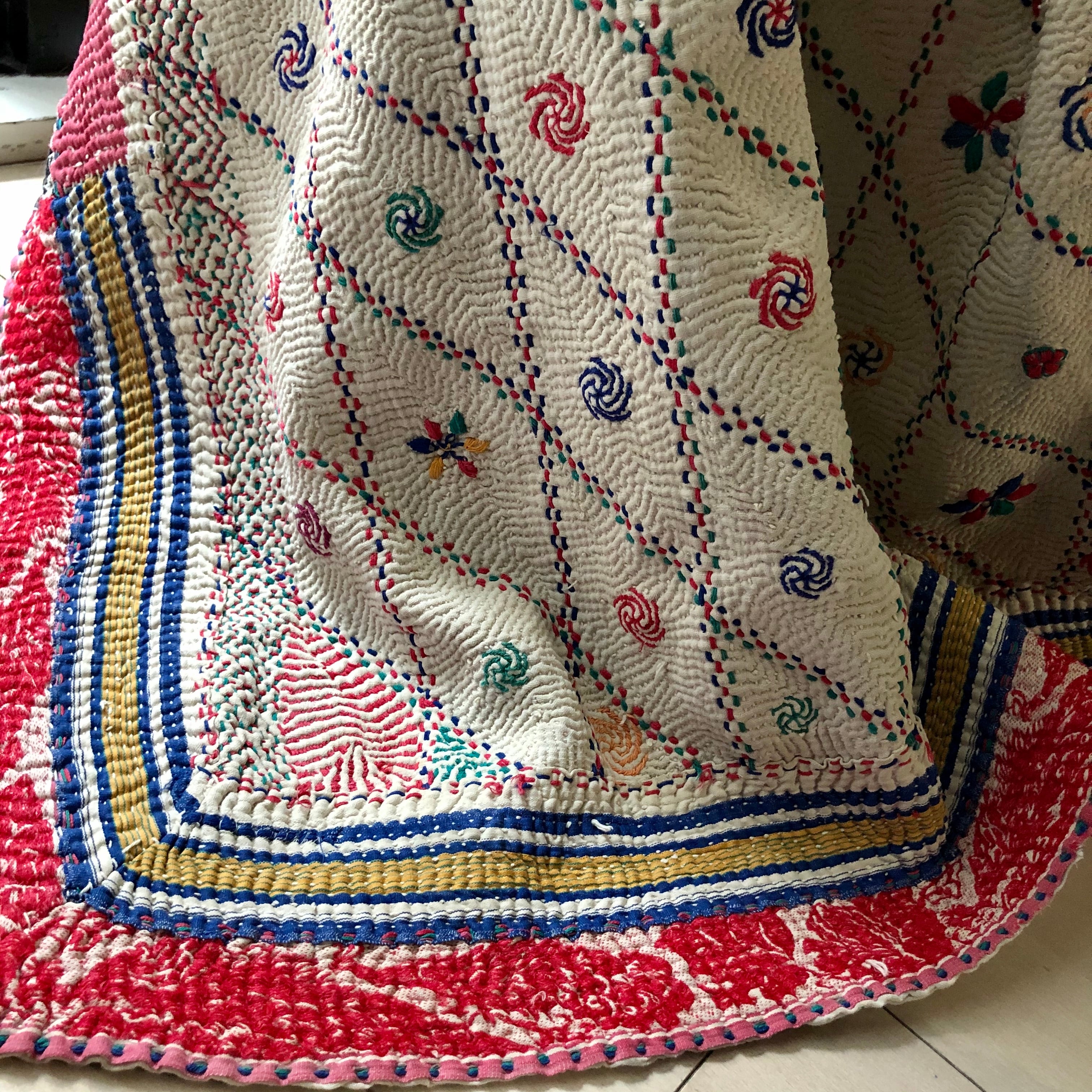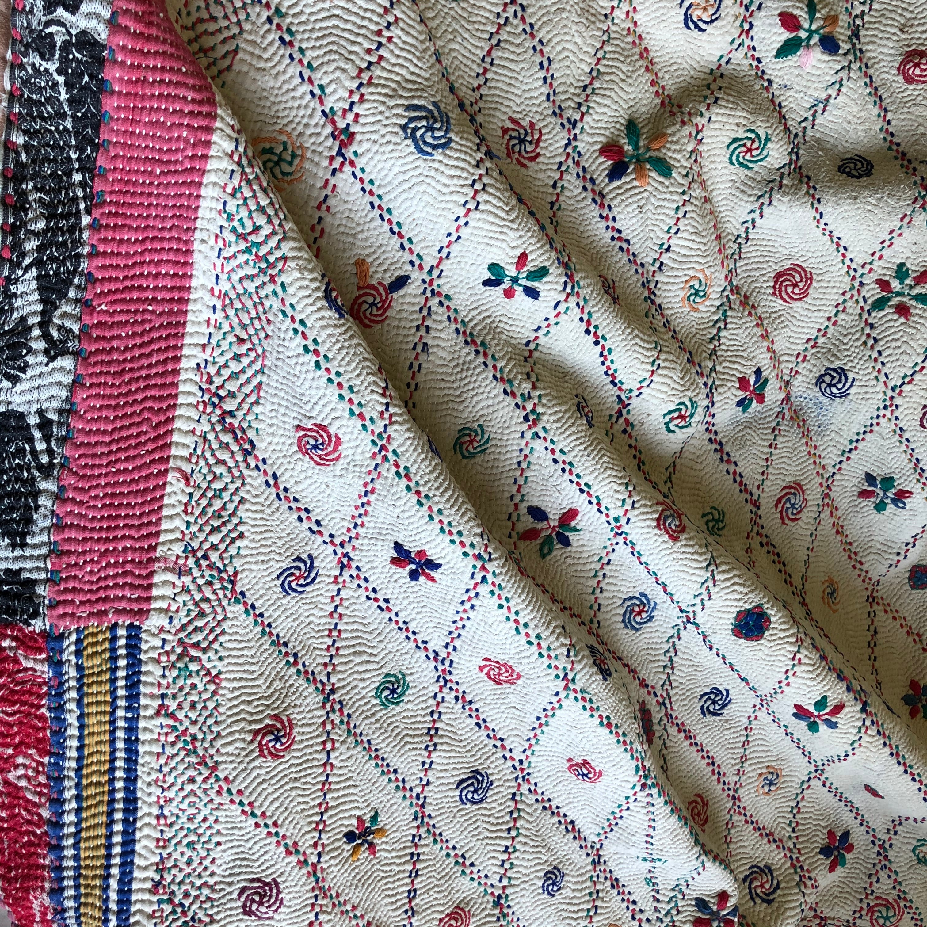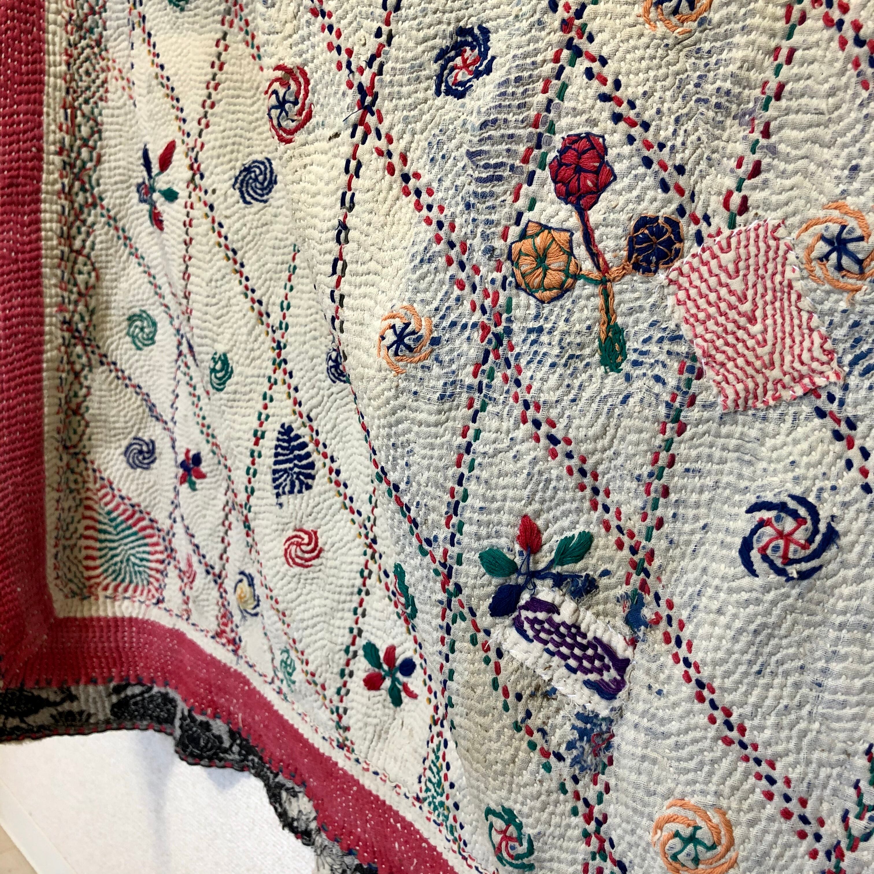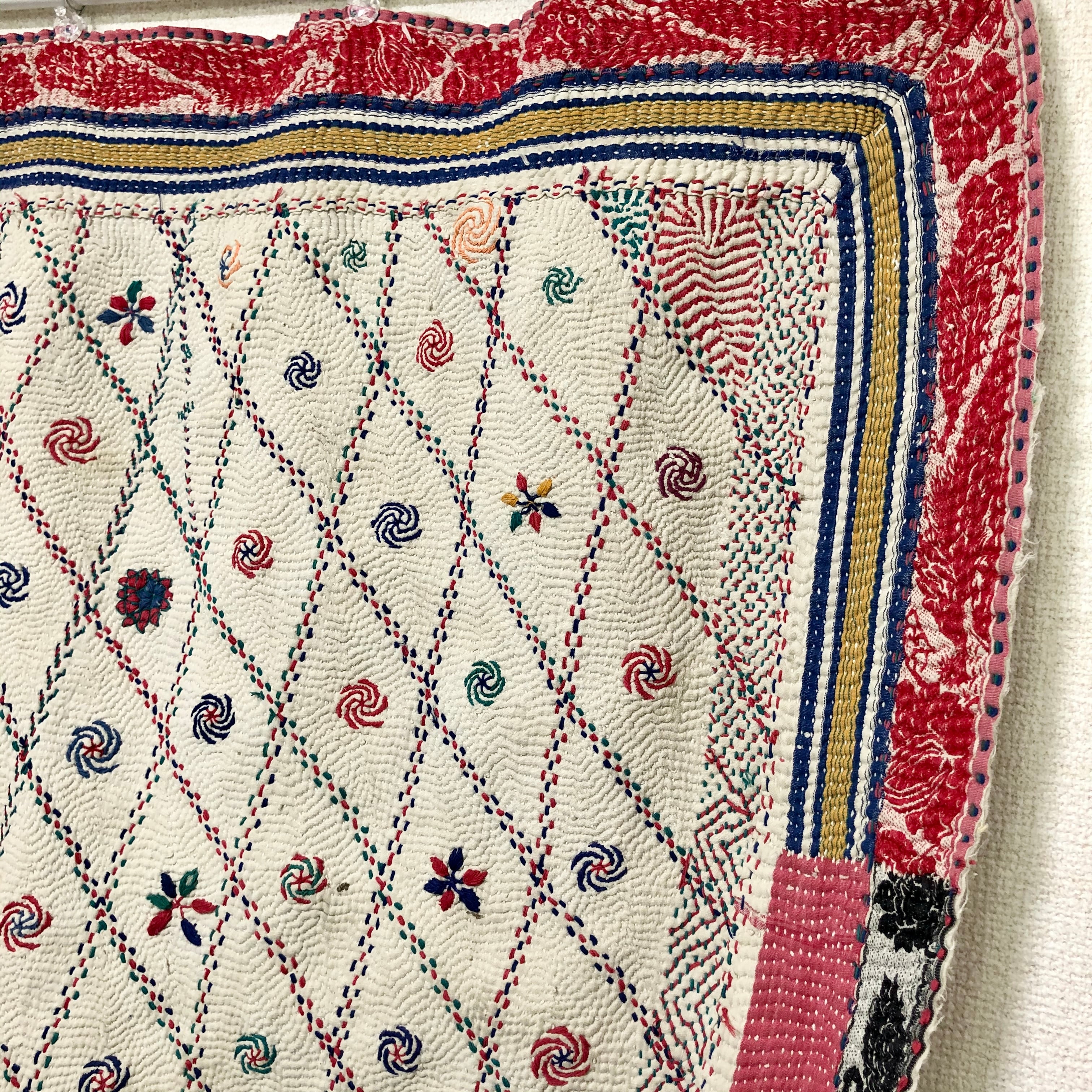 カラフル刺繍のヴィンテージラリーキルト 刺し子 エスニック ハンドメイド インド綿