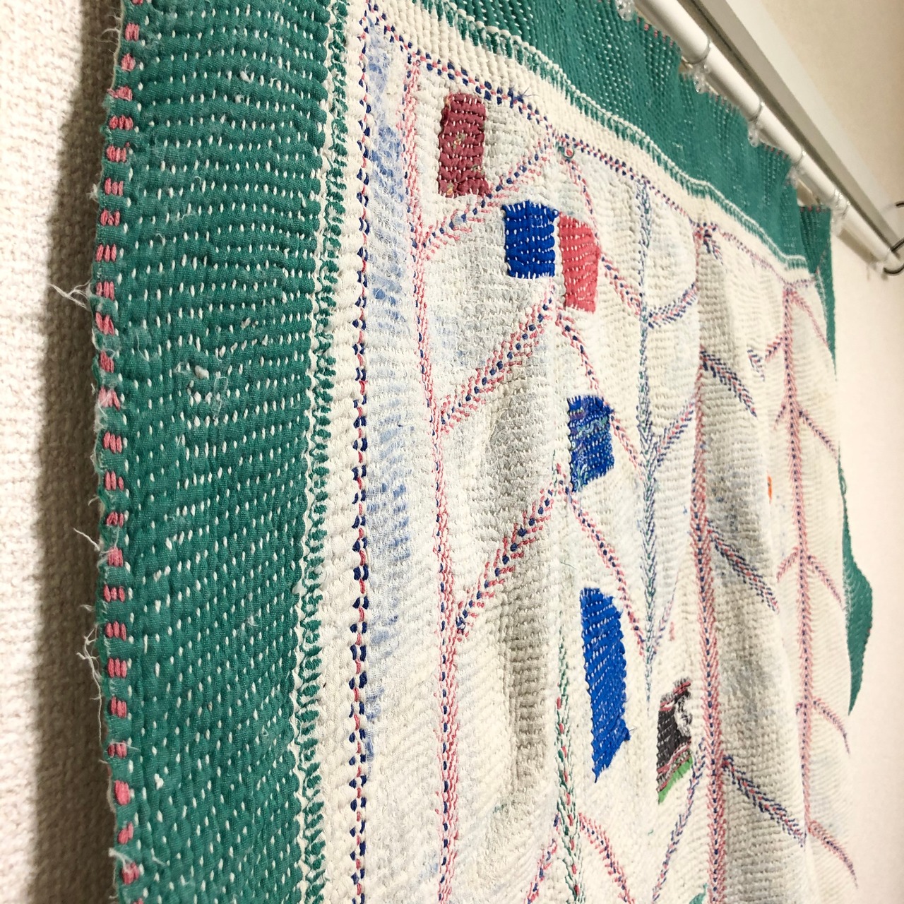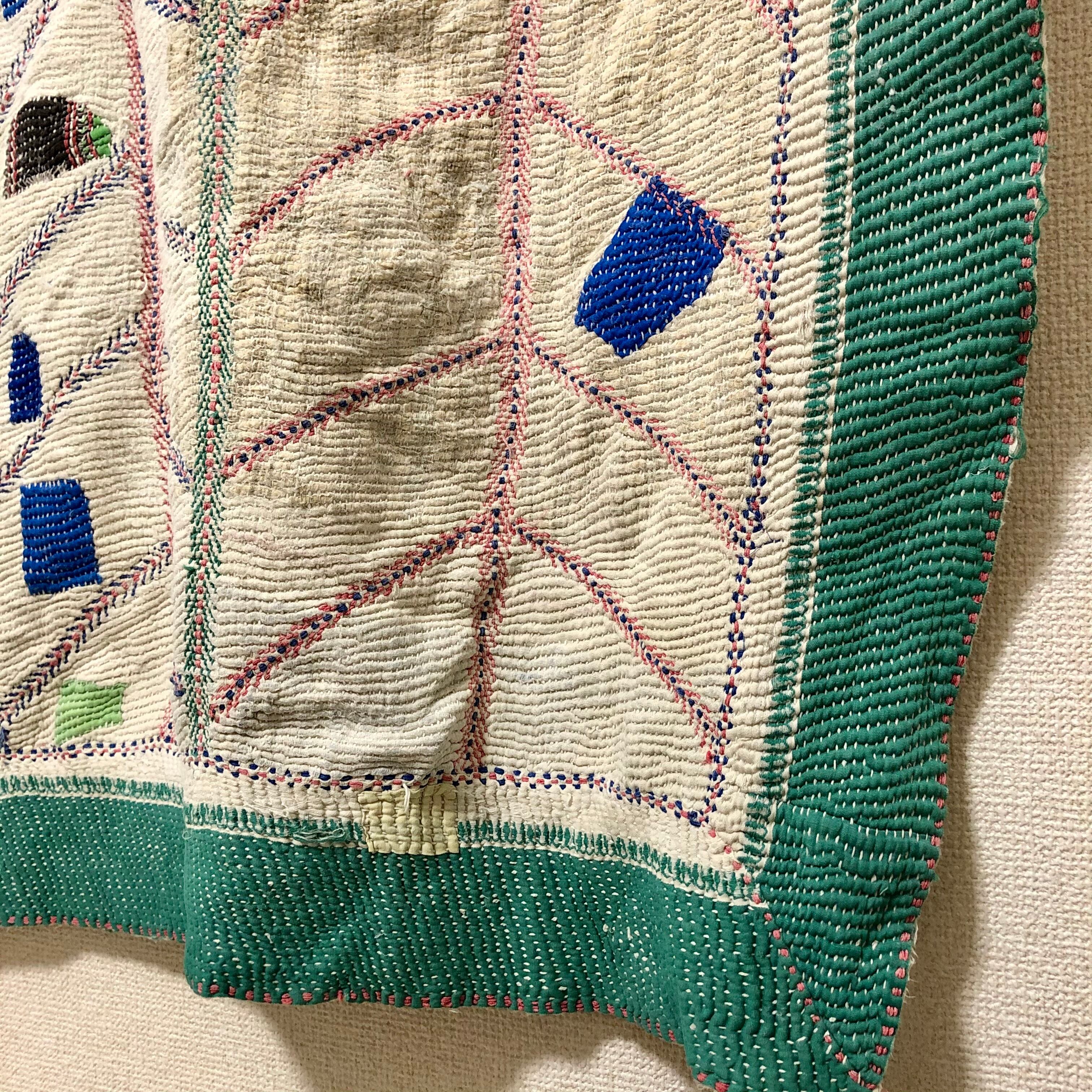 エメラルドにポップな当て布が可愛いヴィンテージラリーキルト エスニック 刺し子