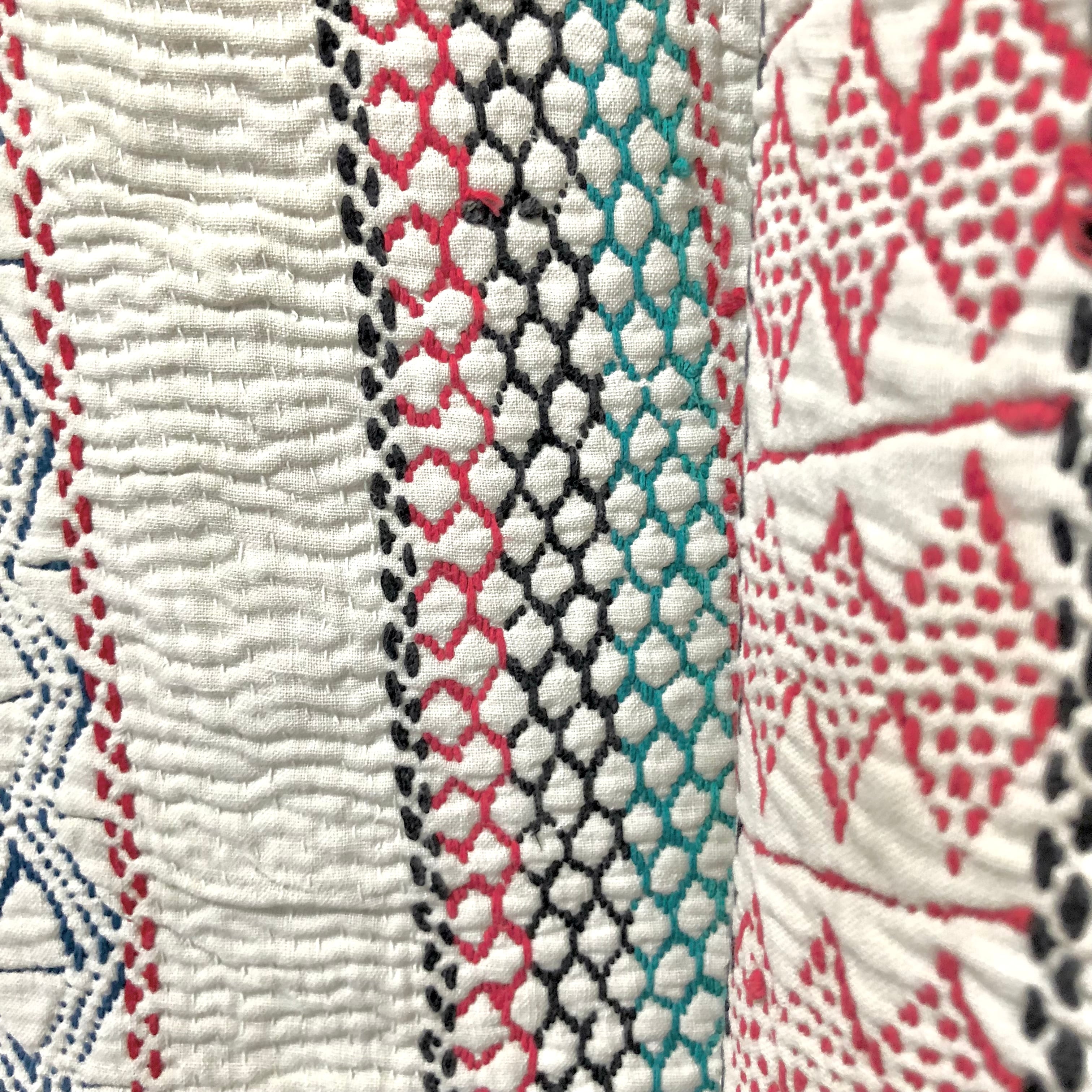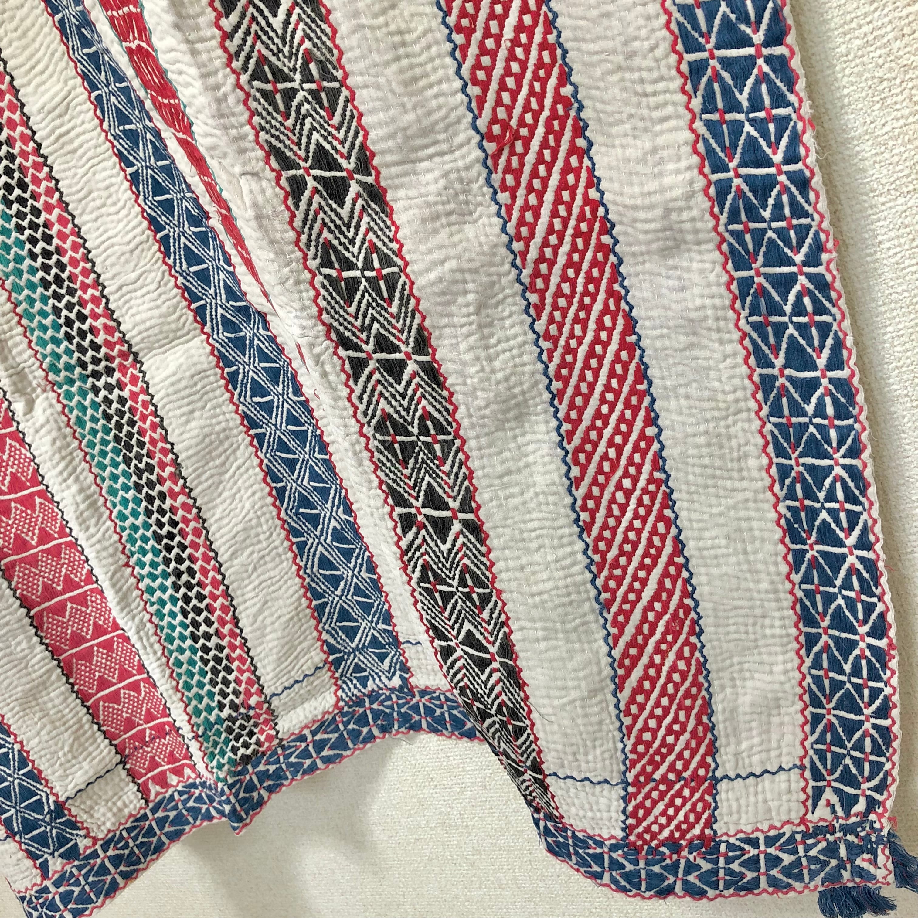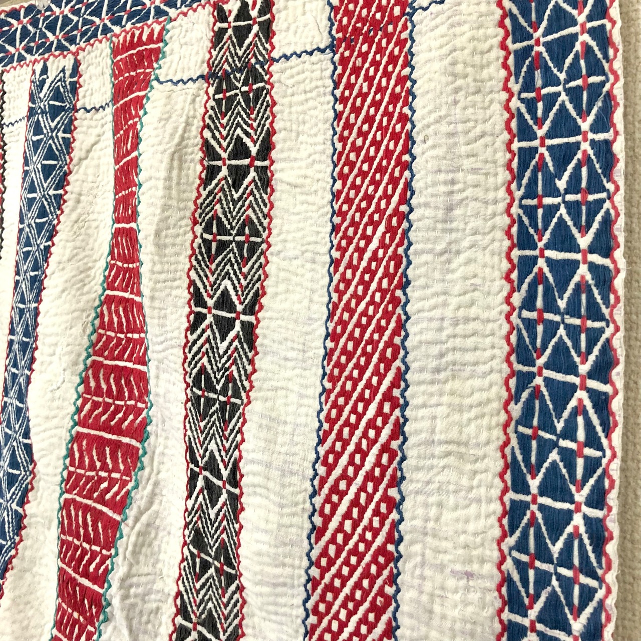 太いカラフル刺繍が可愛いヴィンテージラリーキルト 刺し子 ハンドメイド 襤褸 パッチワーク