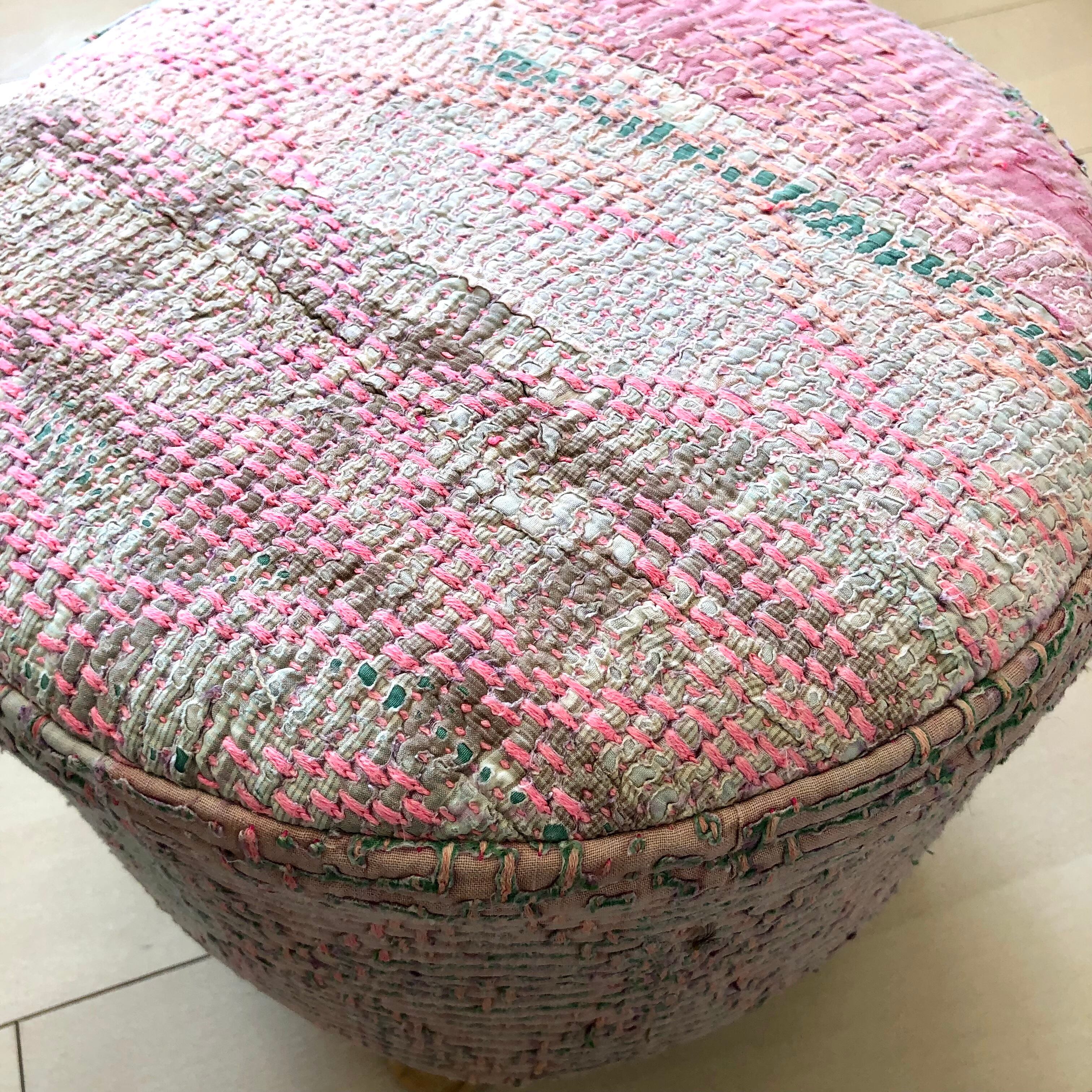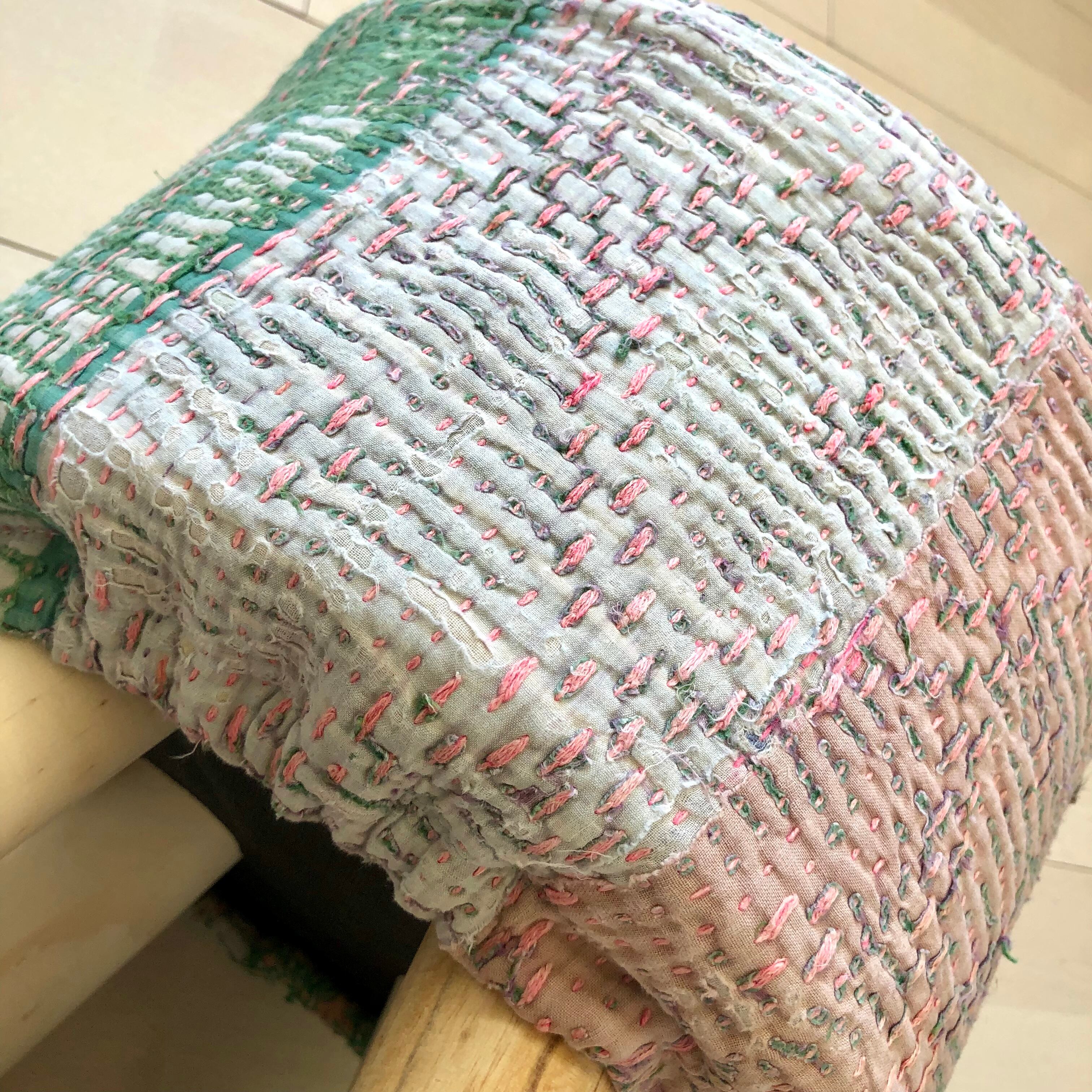 #ラリーキルト #刺し子 #古布 #エスニック #エスニックファッション #インド #刺繍 #民族刺繍 #民族衣装 #パッチワーク #マルチカバー #ソファーカバー #ベッドカバー #ラグ #インドラグ #襤褸 #ヴィンテージ #ビンテージ #アジア #雑貨 #インテリア #タペストリー #カンタ #カンタ刺繍 #ハンドメイド #インド綿 #kantha #kanthastitching #kanthaquilt #vintagekantha #スツール #椅子 #刺繍布 #春色
