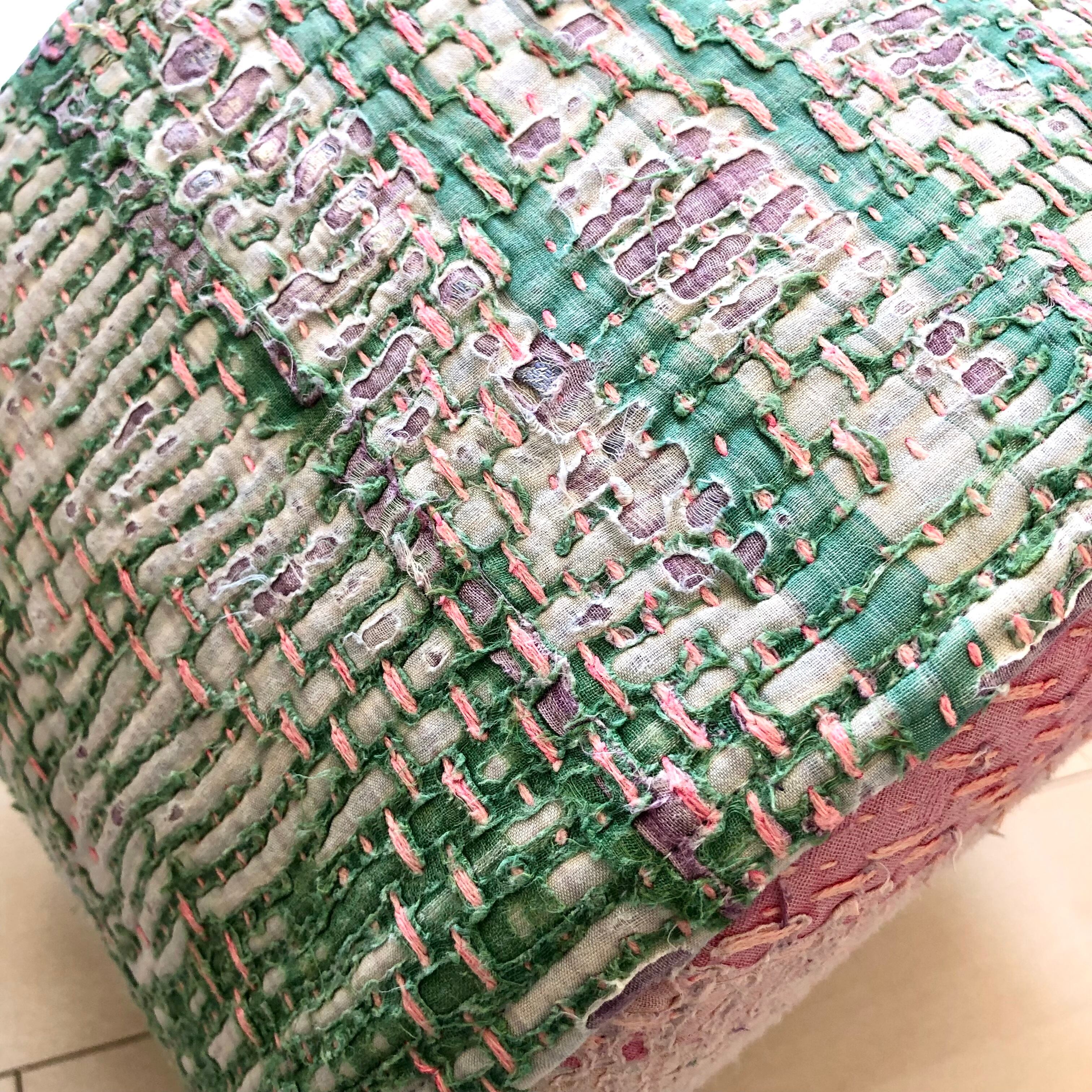 ヴィンテージラリーキルトのスツール 刺し子 オットマン パッチワーク 刺繍布