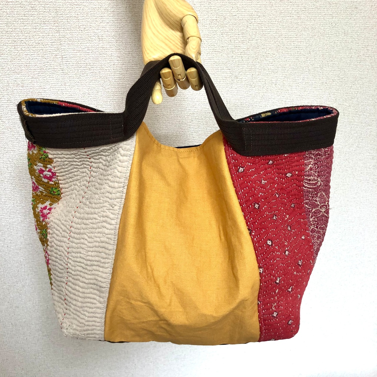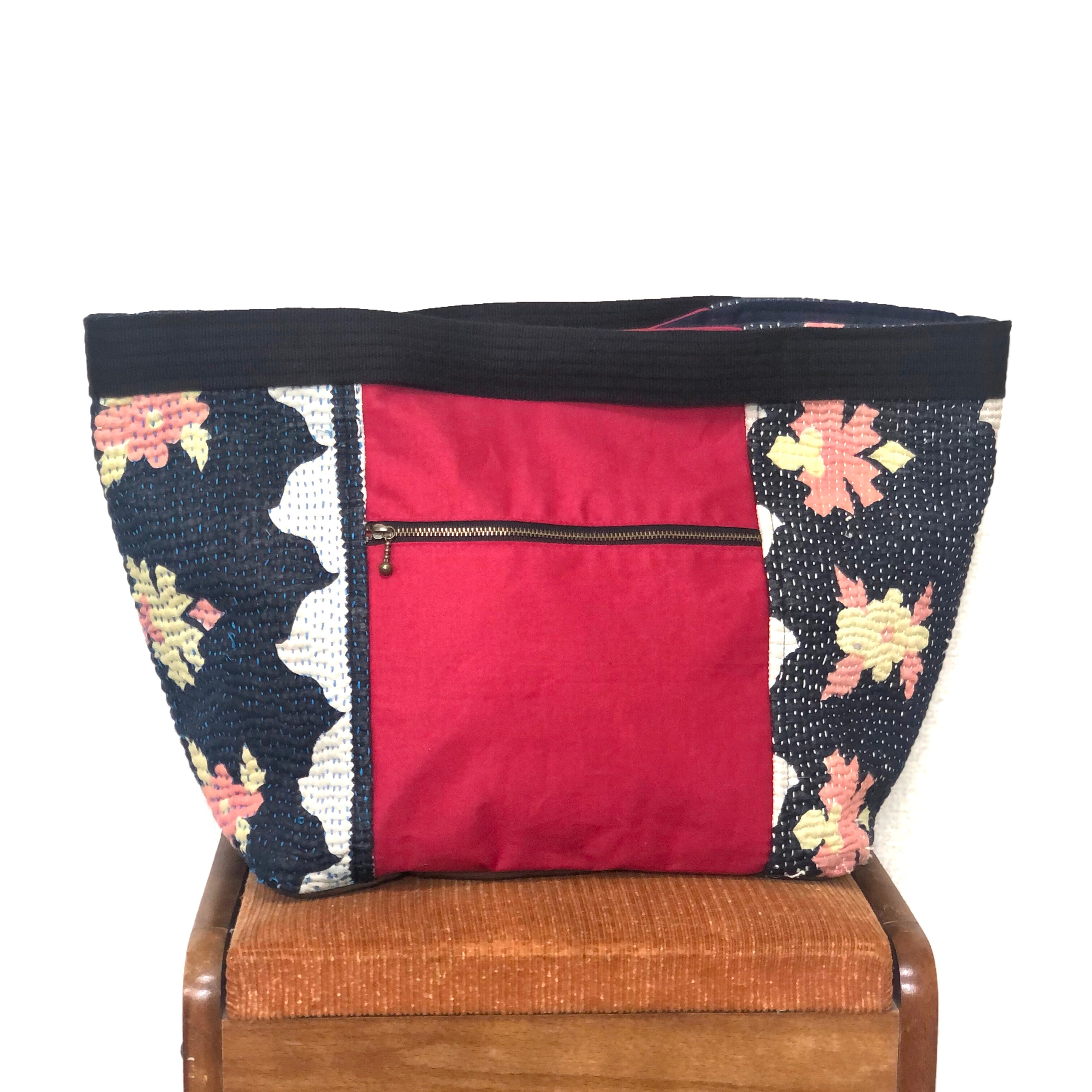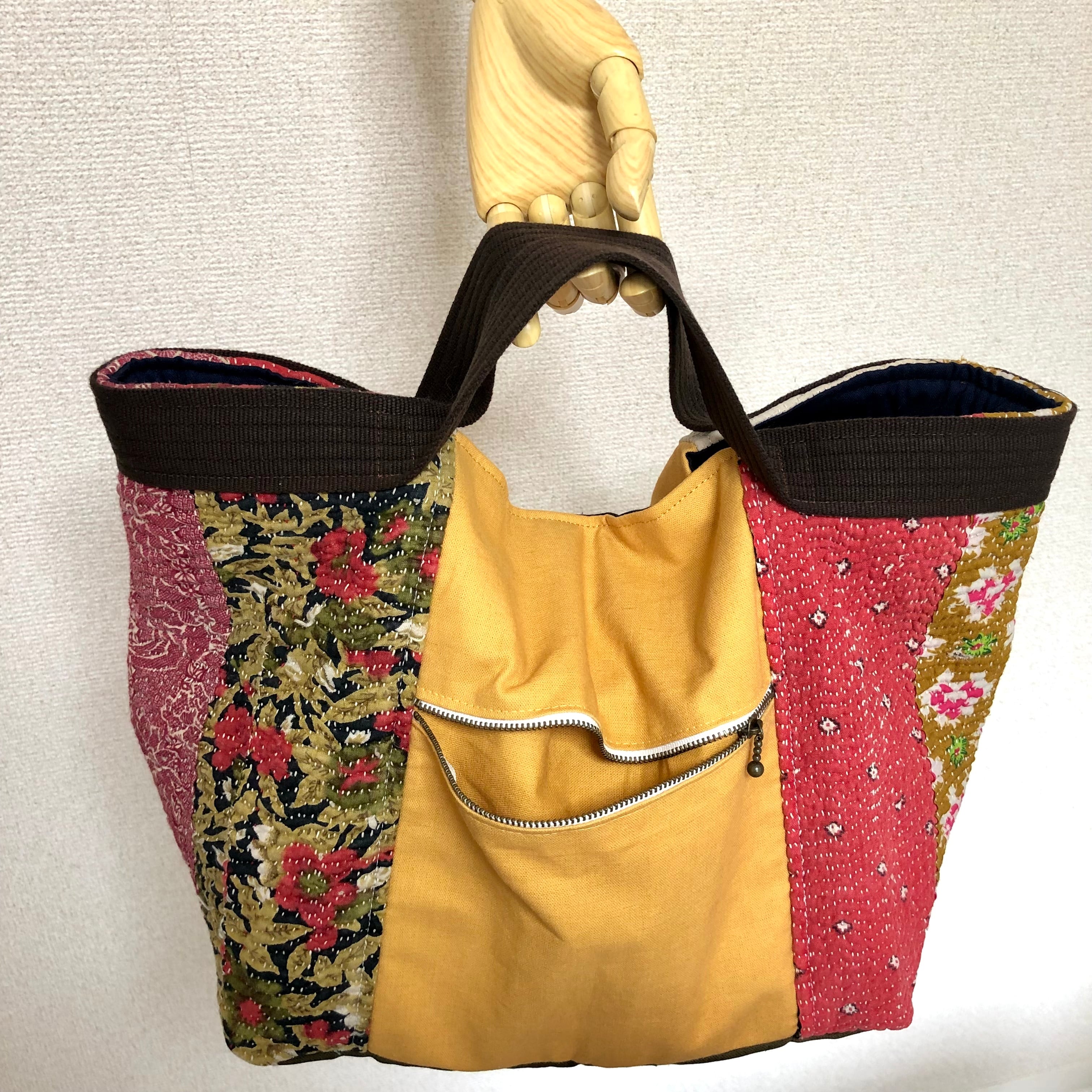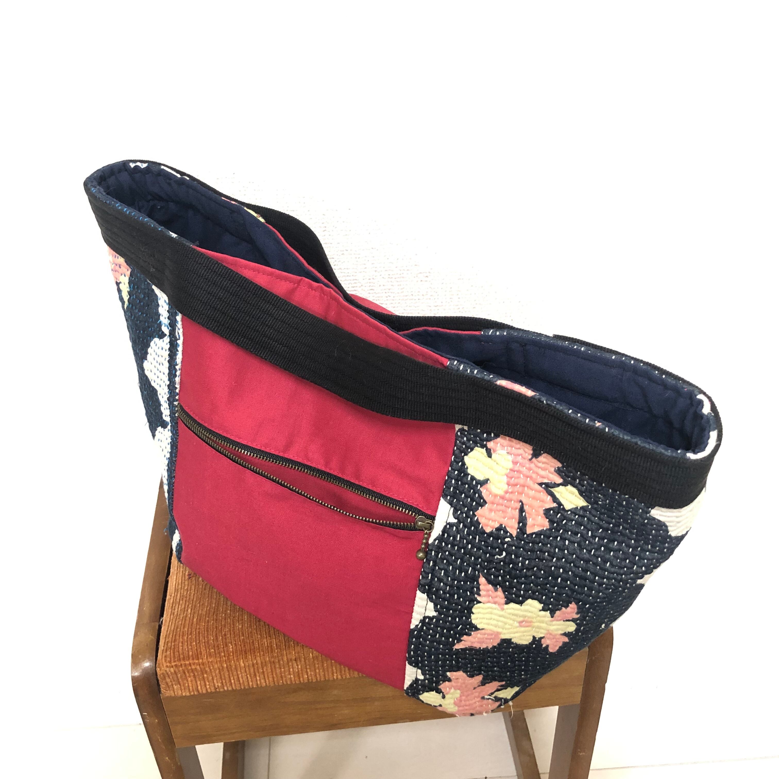 ヴィンテージラリーキルトのトートバッグ ハンドバッグ 刺し子 刺繍 エスニック