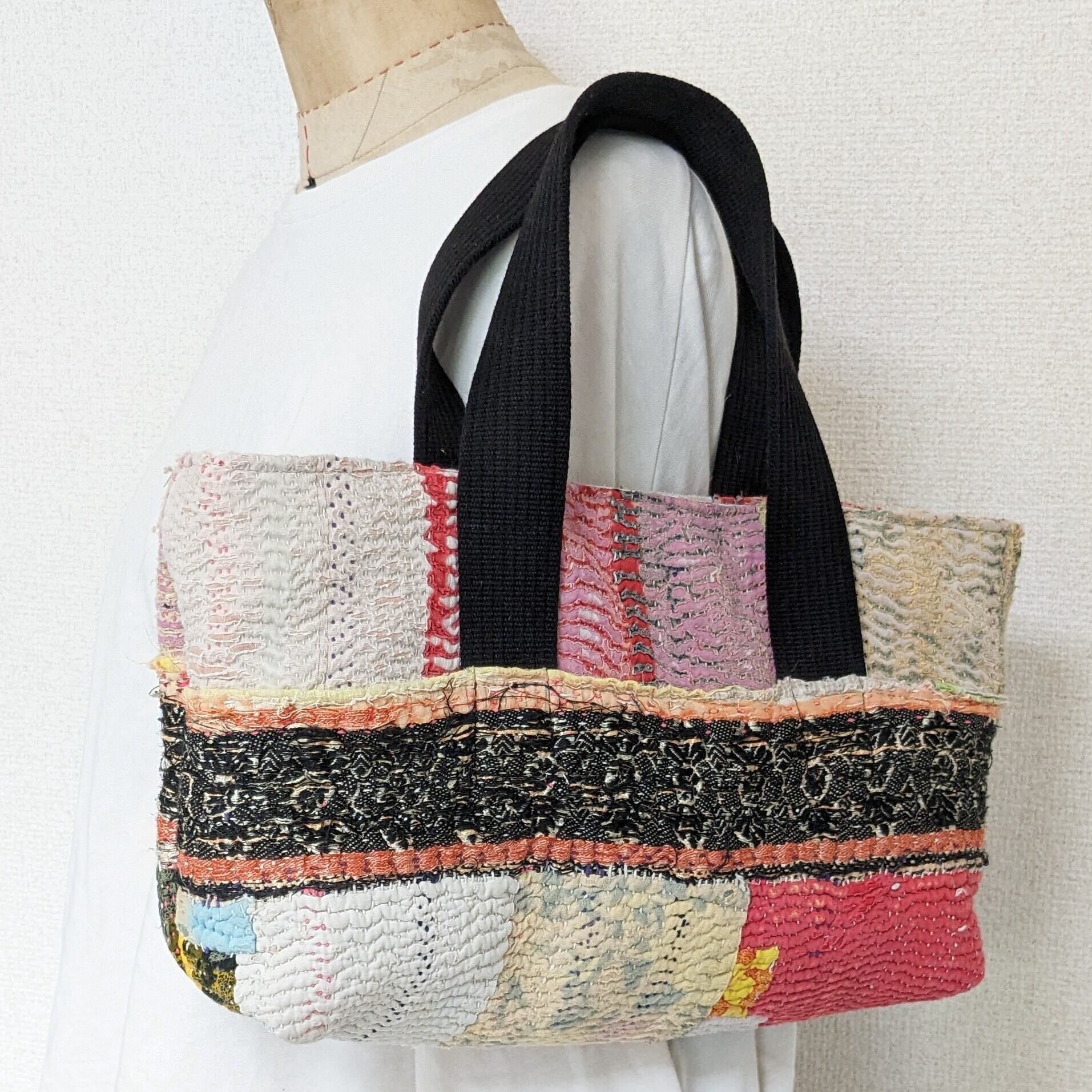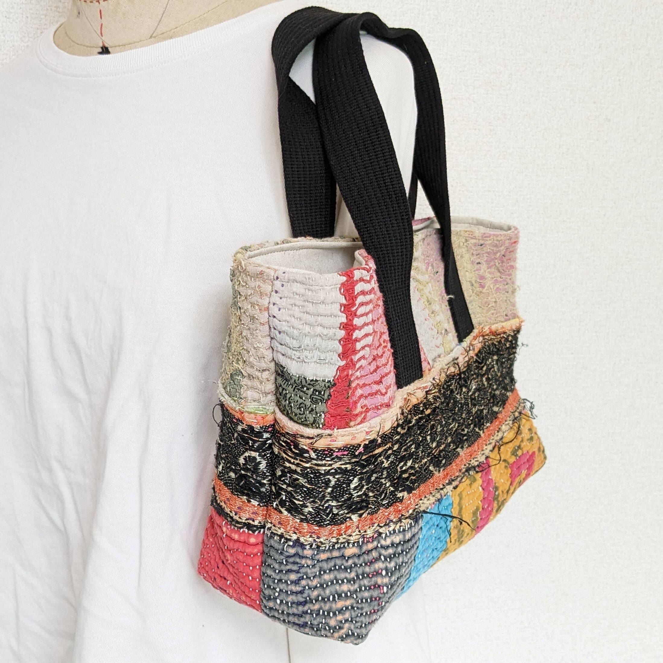 ヴィンテージラリーキルトのトートバッグ パッチワーク 刺繍布 ショルダー 刺し子 襤褸