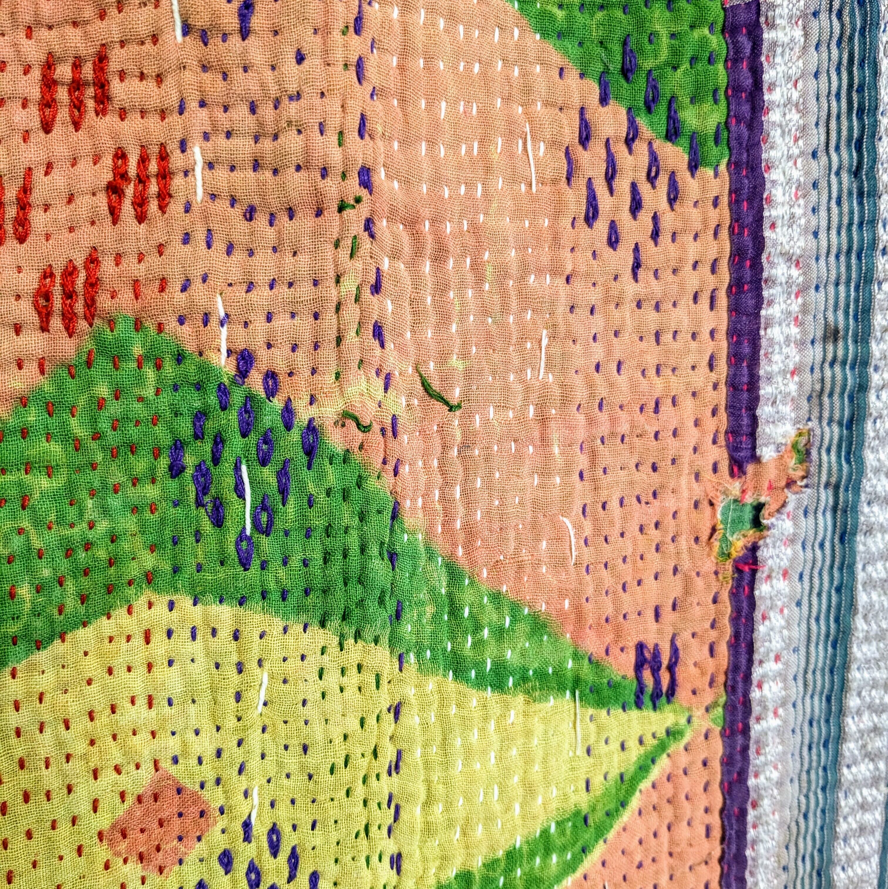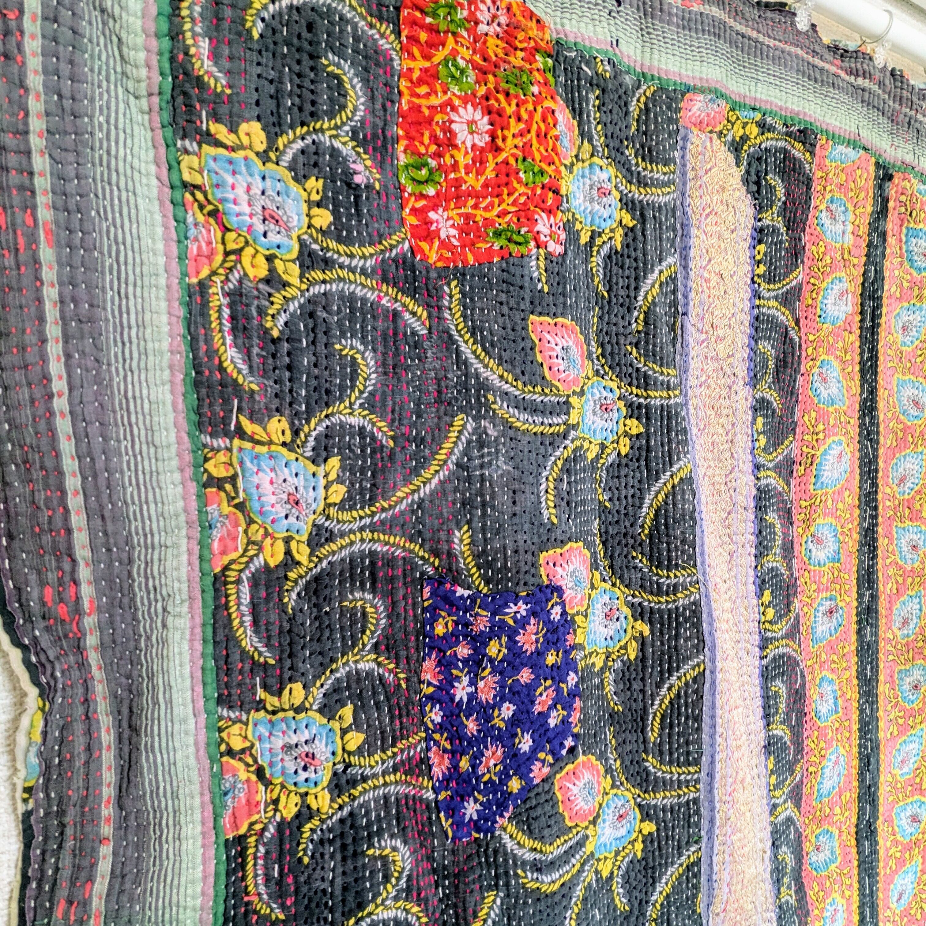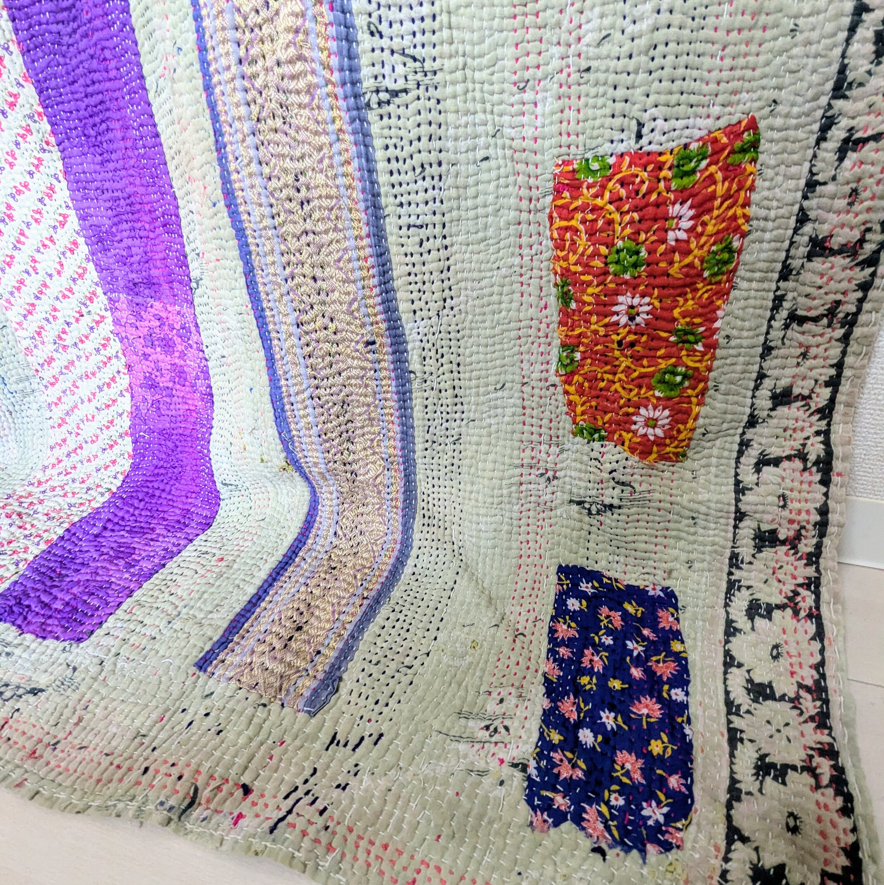 #ラリーキルト #刺し子 #古布 #エスニック #エスニックファッション #インド #刺繍 #民族刺繍 #民族衣装 #パッチワーク #マルチカバー #ソファーカバー #ベッドカバー #ラグ #インドラグ #襤褸 #ヴィンテージ #ビンテージ #アジア #雑貨 #インテリア #タペストリー #カンタ #カンタ刺繍 #ハンドメイド #インド綿 #kantha #kanthastitching #kanthaquilt #vintagekantha